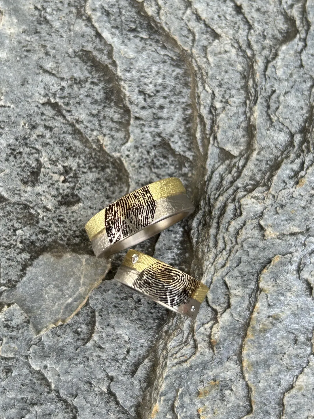 Retour Galeries Alliances Alliances en or gris et jaune avec les empreintes de la main Alliances en or gris et jaune avec les empreintes de la main ID: 264 Reviews Ajouter à mes coups de coeur · Mes coups de coeur Image